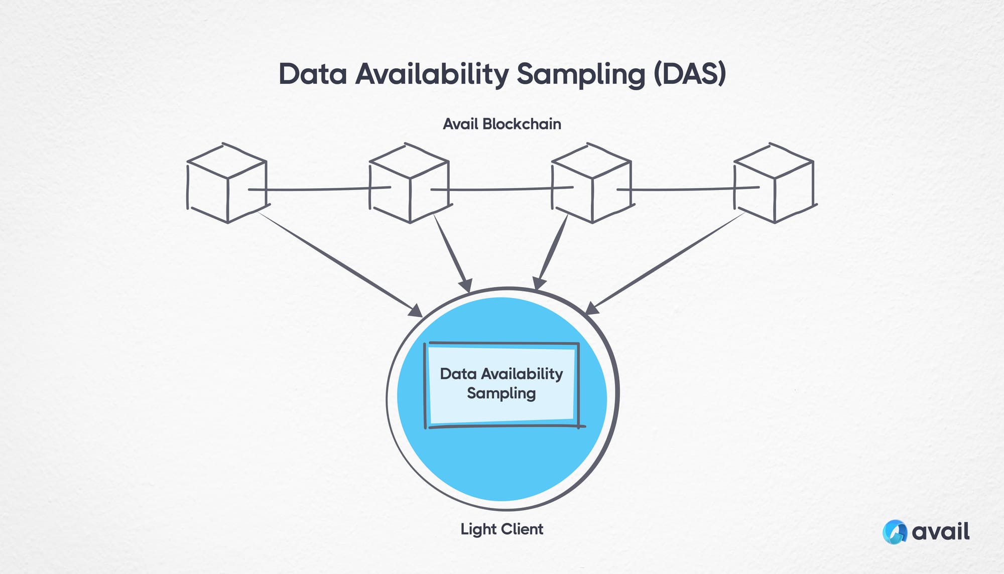 Consumer grade hardware all around the world can be contributing towards this network of light clients, collectively forming a replica of the Avail blockchain. Avail DA is unique in its ability to sample from this replica of the blockchain. This empowers entire communities of users to sample from, and contribute to, the security of the network. This positive feedback loop expands block size and adds resiliency and security to the network as demand increases.