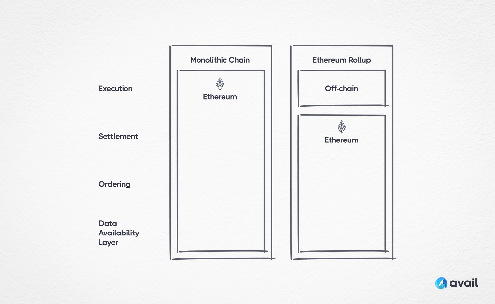 In the same way that Ethereum Rollups were able to take execution off-chain, blockchains built with Avail DA can take data availability off-chain. Avail provides a flexible, easy to use and secure general purpose data availability layer for developers while addressing scalability, governance and decentralization concerns.