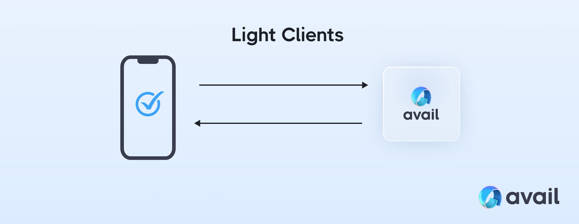 Avail DA itself scales by increasing block size with demand. It does this with support from Avail’s Light Client, an extremely lightweight piece of software that can verify validity proofs from a laptop, phone, raspberry Pi and smart watch. The Avail Light Client randomly samples data from Avail’s blockchain and calculates a confidence score, gaining confidence of all the data’s availability with each successive sample. This provides comparable security to full nodes. As new light clients join, they join the swarm of light clients, forming a P2P network. Both the Avail blockchain itself, and this P2P network scale with demand ensuring that the blockchains that use Avail can keep scaling.
