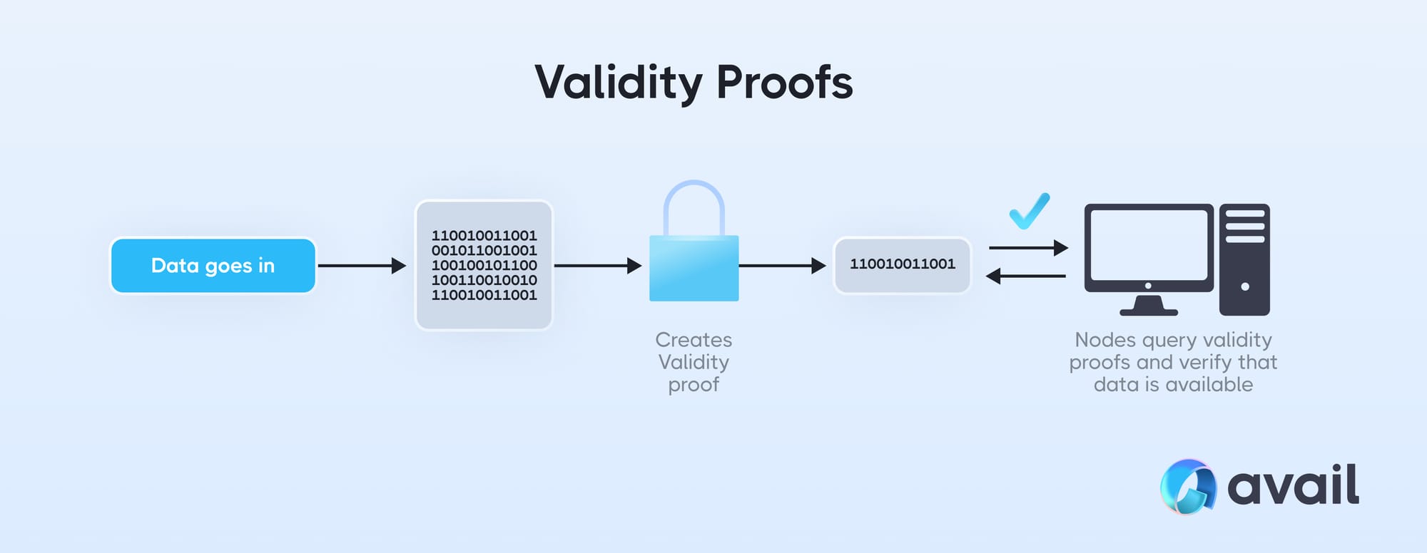 Inspired by the cryptographic security of ZK-technology, Avail uses validity proofs (KZG commitments) to secure and verify erasure coded data on Avail DA. This provides end users with mathematically verifiable guarantees that data is in its original form, and available, so users do not have to trust any external party. This has made Avail DA the most responsive DA layer on the market, able to provide DA guarantees to users in less than a minute.