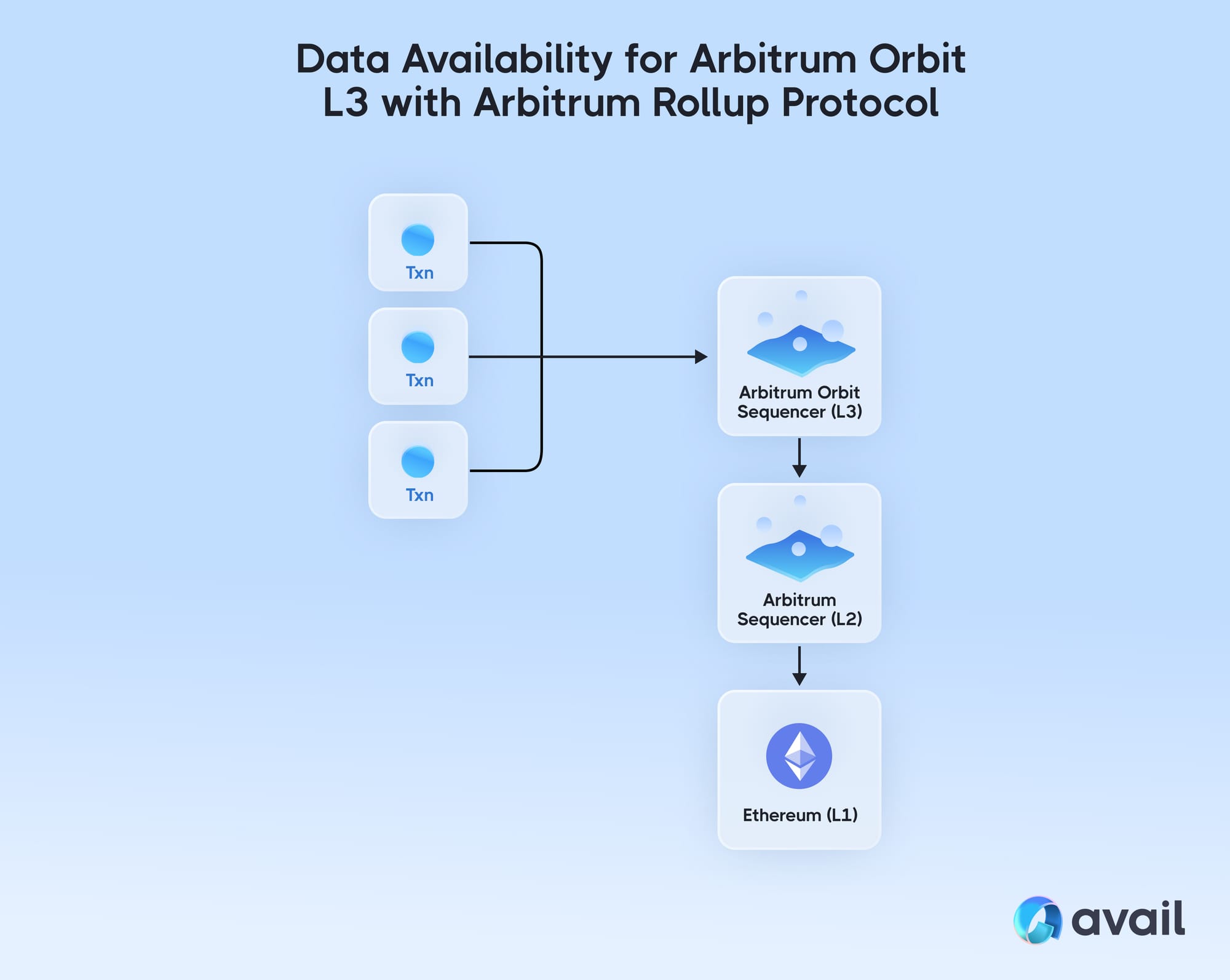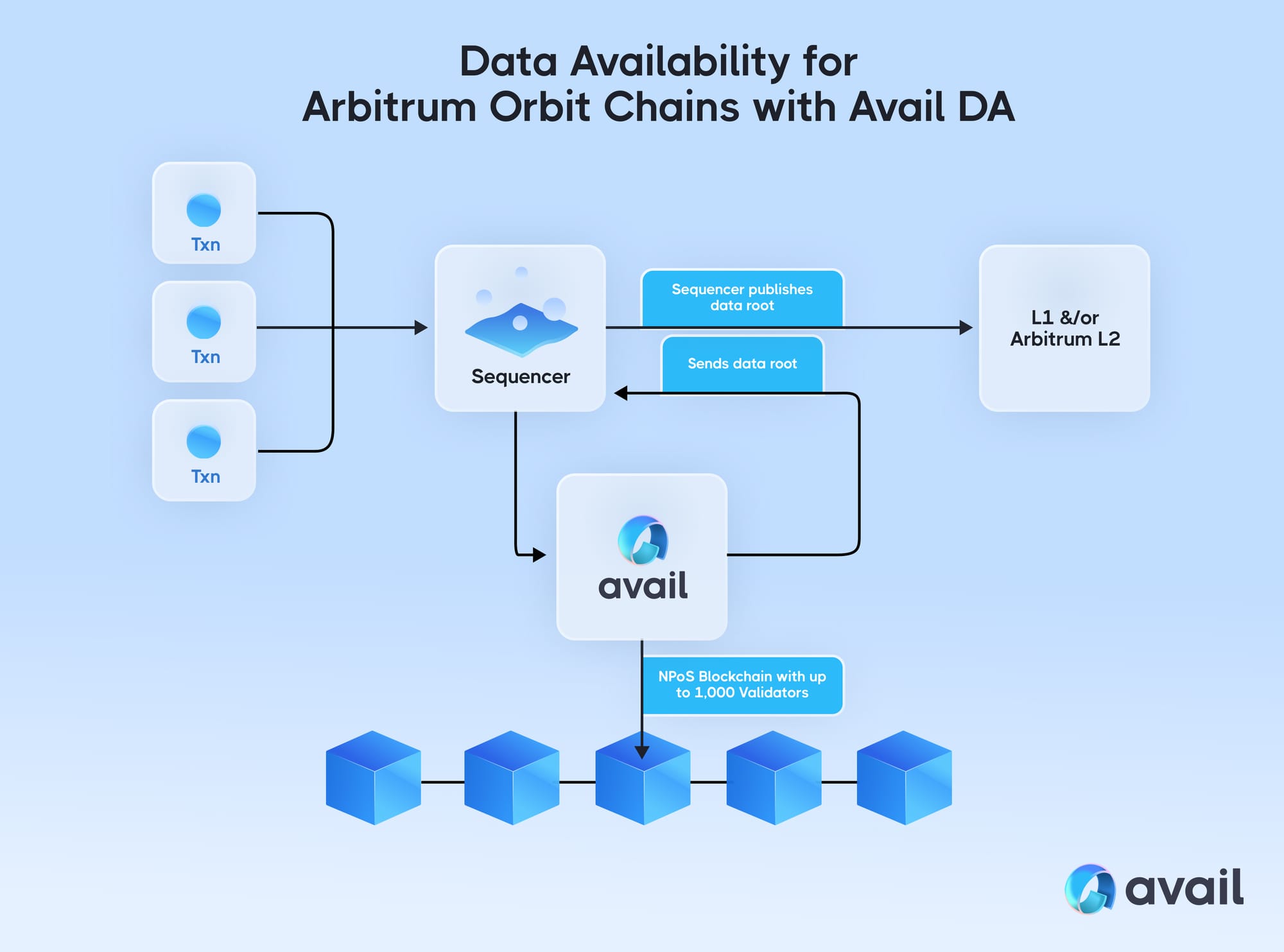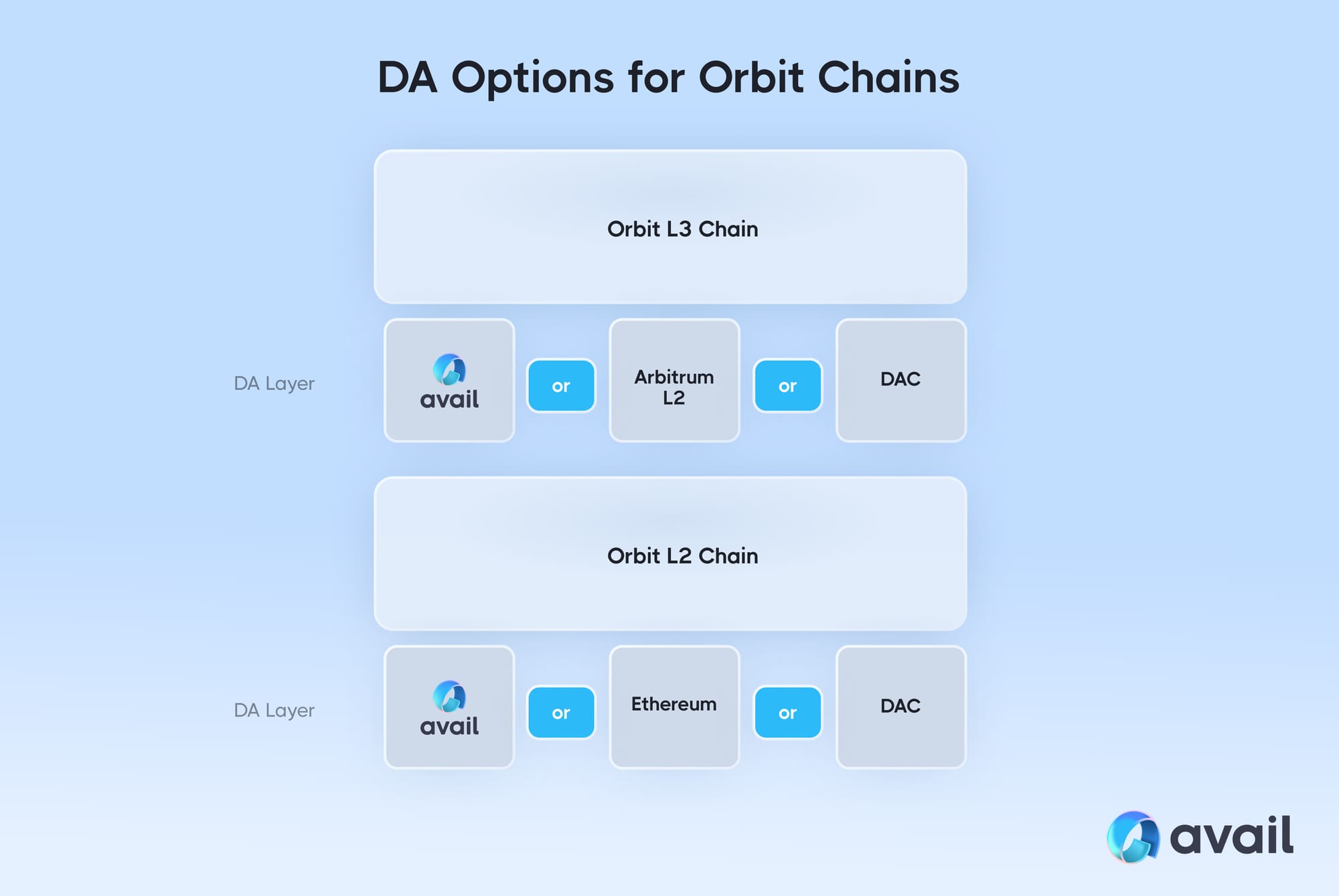 Arbitrum Orbit Chains can start sending transaction data to Avail’s secure, low-cost and decentralized DA layer on the Turing testnet today and on Avail’s mainnet in the coming weeks. This provides the Arbitrum ecosystem with an opportunity to leverage Avail’s DA layer which is capable of guaranteeing an entire ecosystem of L3 Orbit chains.