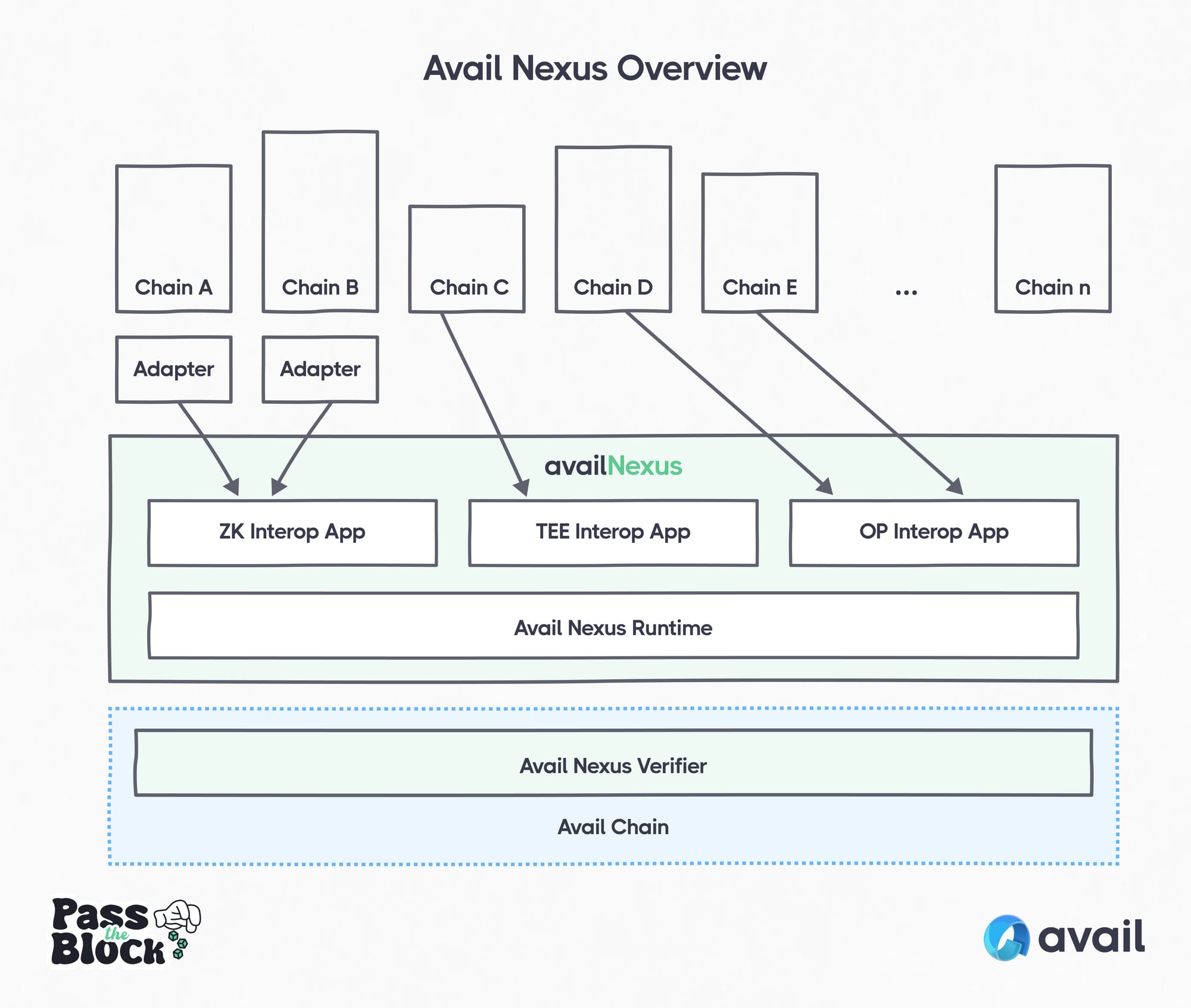 - Avail Nexus Adapter: This makes it so that ZK chains built using any ZK chain stack are compatible with the Avail Nexus Runtime, and the Messaging Layer.