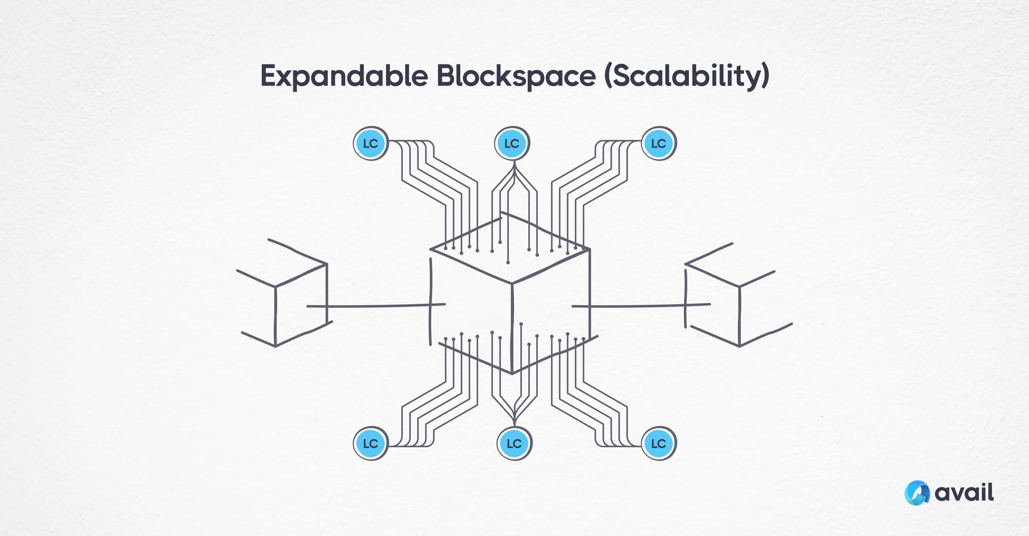This leads to a positive feedback loop where blockspace, security and resilience actually increases, the more light clients there are in the network. Contrary to monolithic blockchain designs which reduce the amount of blockspace available as demand increases, Avail’s DA layer can scale blockspace with demand, future-proofing your appchain or rollup.