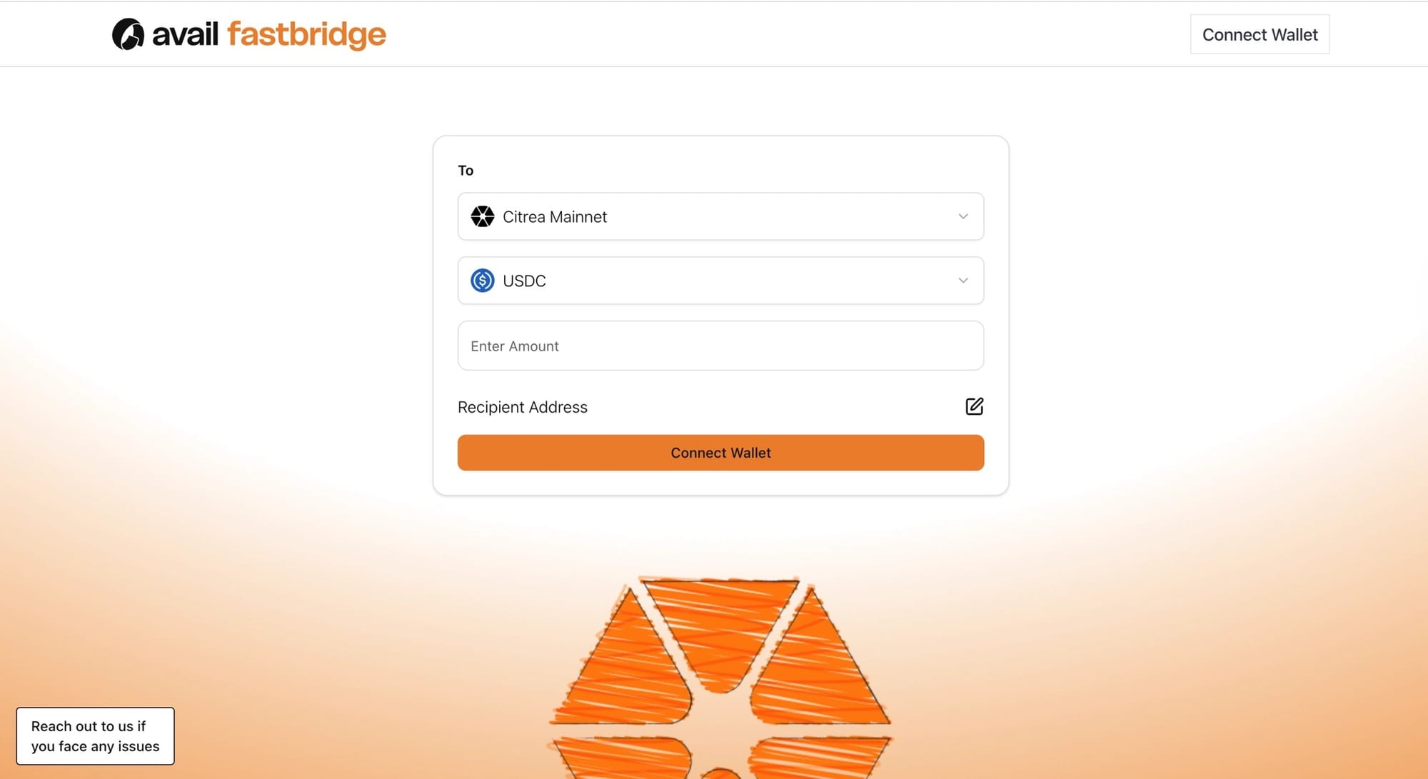 Go to fastbridge.availproject.org in your browser. Connect your wallet (MetaMask, Rainbow, Coinbase Wallet, or any WalletConnect-compatible wallet). No download required.