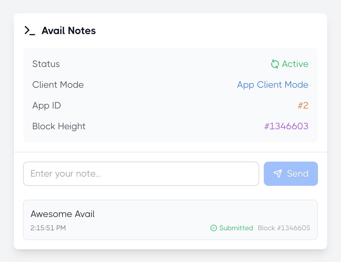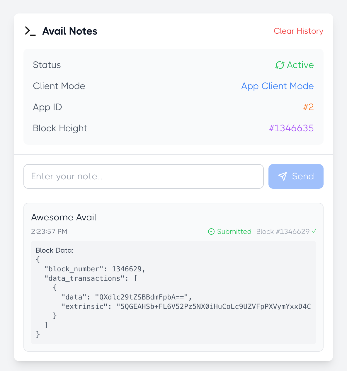- Enhanced Features: Your notes on chain! Block confirmation tracking with Avail Light Client