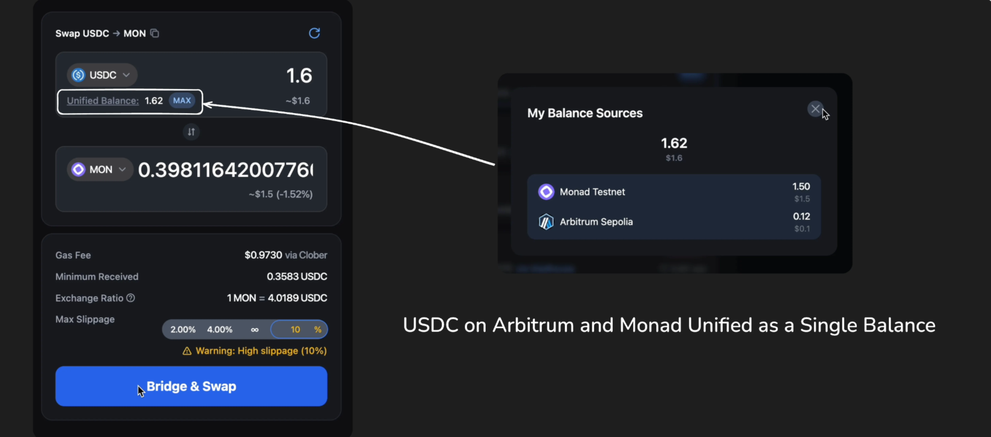 But like every Monad app, Clober faced a core user-onboarding friction: new traders needed to bridge assets onto Monad before they could trade.