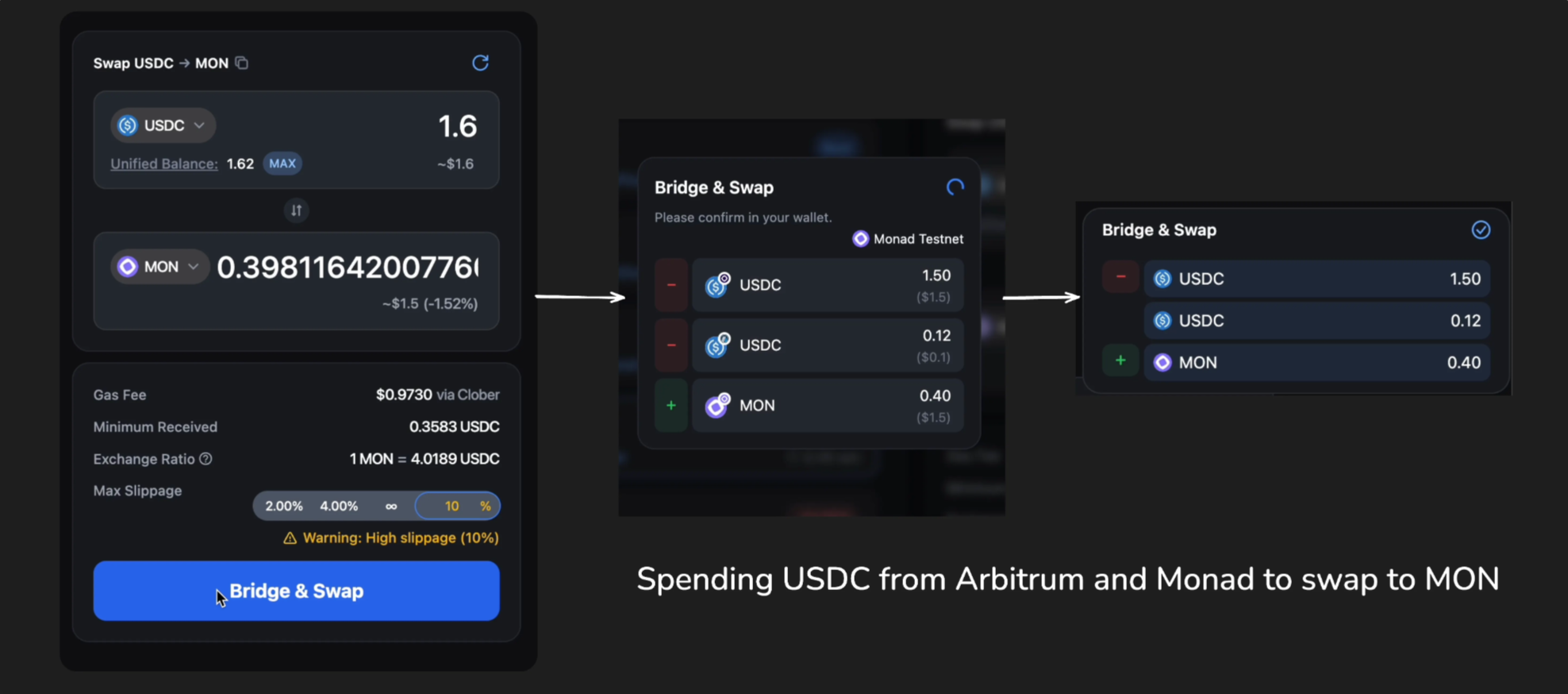 For a new ecosystem like Monad, at mainnet launch, almost all user liquidity will originate from non-Monad chains, so solving this becomes essential for early adoption. It's the difference between a user trying the app immediately or abandoning the flow entirely.
