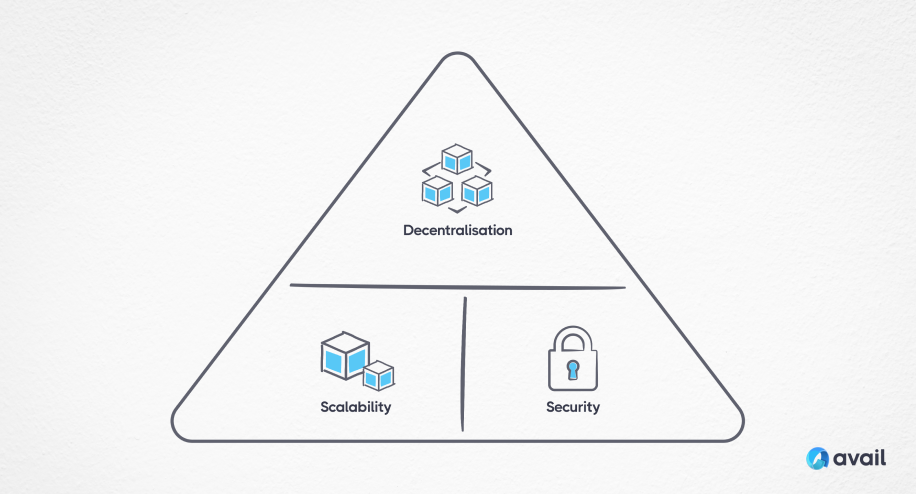 In monolithic blockchain systems where the data availability process is just one other process embedded within the blockchain itself, it’s confronted with the blockchain scalability trilemma. In order to increase the amount of data availability capacity, a monolithic blockchain needs to provide an equivalent ability to scale execution. This is why the introduction of rollups has been so successful, freeing up execution to take place on a different blockchain and placing more demand on data availability. To achieve scale across both data availability and execution within a monolithic blockchain, you must trade-off either between decentralization, scalability or security.