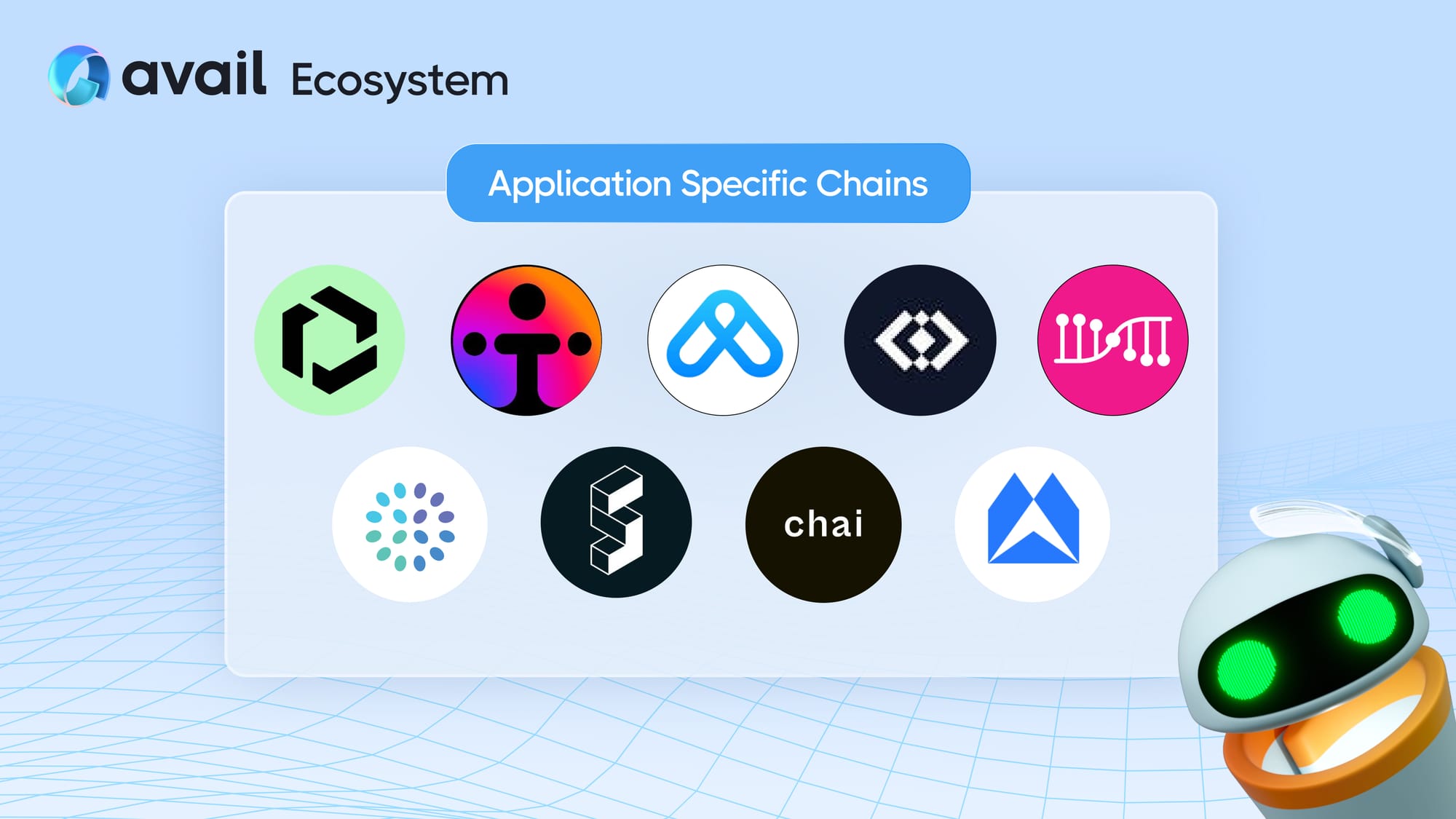 Just like in modern application development, teams are creating blockchains that fulfill a specific purpose. These blockchain-based building blocks enable developers to create far more sophisticated applications for their users. Avail DA is the supporting platform which helps enable this application specific activity to take place on top.