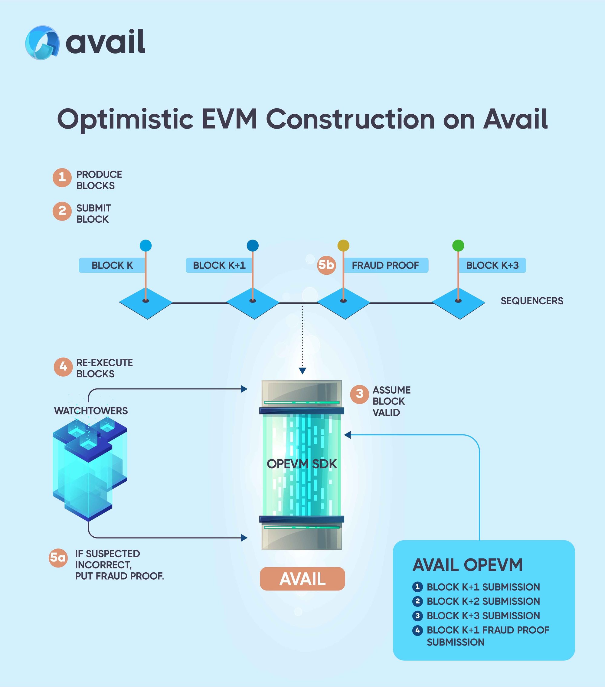 OpEVM is built to work atop Avail’s data availability layer, a base layer that is optimized for data availability, leaving transaction executions to separate layers. This means that OpEVM facilitates the creation of rollups that operate independently of smart contracts for dispute resolution. It is this independence from smart contracts that makes OpEVM unique.