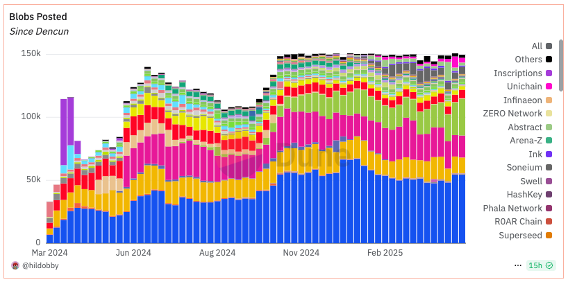 Assuming these four L2s don’t start posting more data, their current blob consumption alone will take up around 30-40% of Ethereum’s blob capacity, post Pectra.