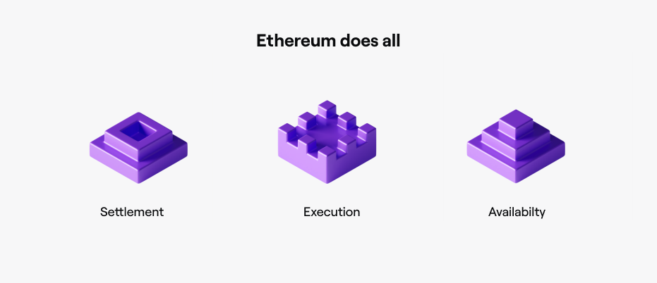 Unfortunately, settlement layers like Ethereum only have so much space per block. In a modular system, other layers relieve the settlement layer of having to perform any tasks beyond providing security so that more block space can be freed up.