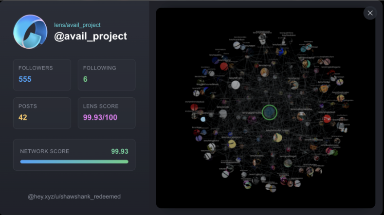 For a lot of users, the concept of owning a social graph can be a little abstract. So, with Lens Chain now live on Avail, we decided it would be fun to build a POC data visualisation tool to help Lens users actually see and interact with theirs. We vibecoded LensCollective.me to visualize and mint your social graph as a social card (the visualization is live now, with minting coming soon!).